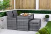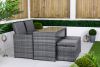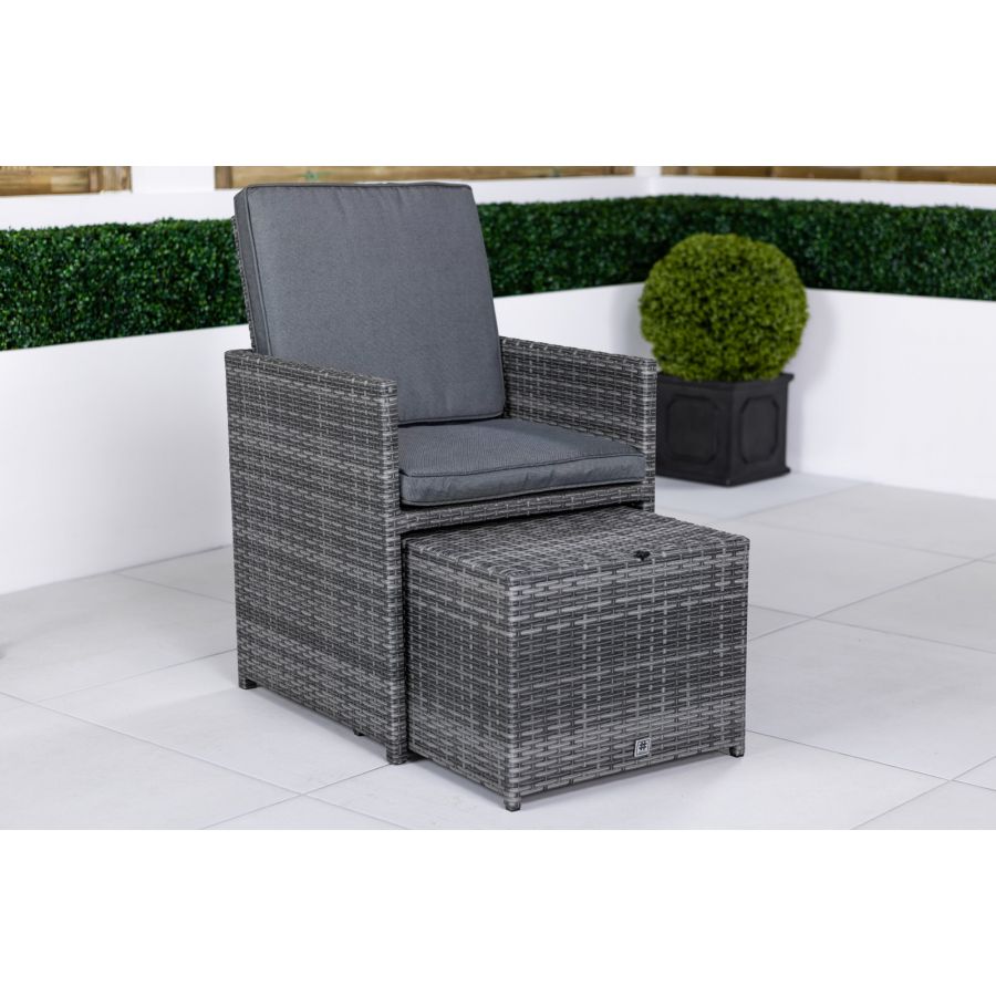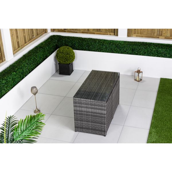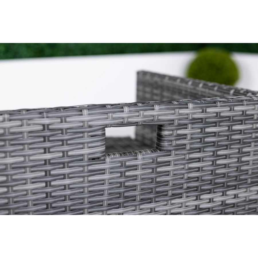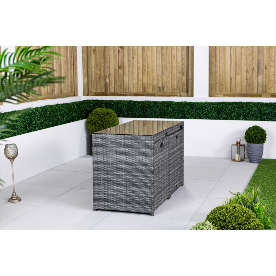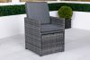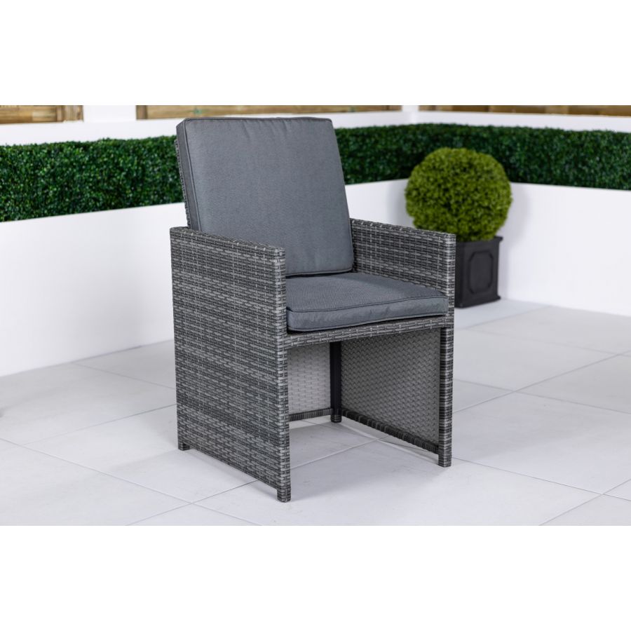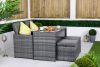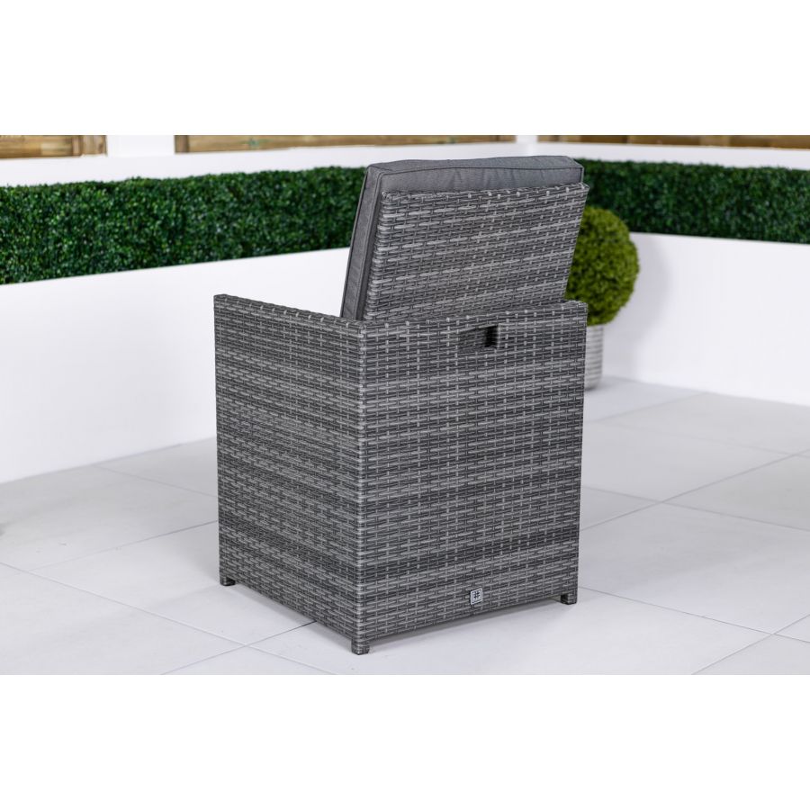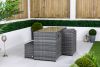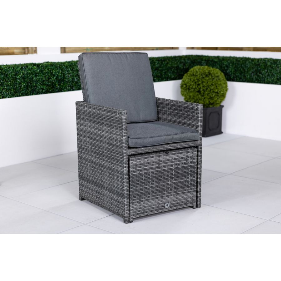 Ideal for small balconies, patios, and terraces, the Giardino 2 seater cube garden furniture set offers a stylish and space-saving solution for outdoor relaxation. This versatile grey rattan bistro set comfortably seats up to four people with its 120cm x 60cm bistro table, two cushioned cube chairs, and two plush padded stools. When not in use, the chairs and stools neatly tuck away under the table, maximizing your precious outdoor space.