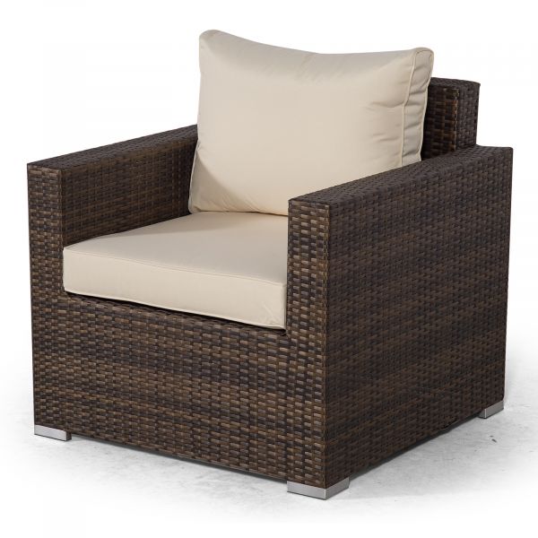 Luxurious multi-density foam and fiber padded cushions make this outdoor armchair super comfortable. Featuring a 10 cm thick seat cushion and 20 cm thick back cushion, the multi-density fillings enhance the shape and structure of the cushions, providing comfort and support to your seating arrangement. Our special water-resistant fabrics protect your cushions from showers and all cushions come with removable zip-off covers for easy maintenance.