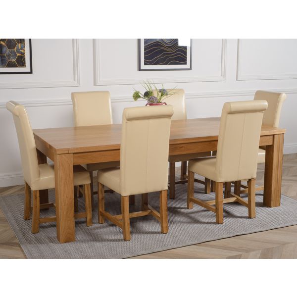 DAKOTA 222CM SOLID OAK DINING TABLE & 6 WASHINGTON LEATHER CHAIRS