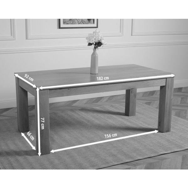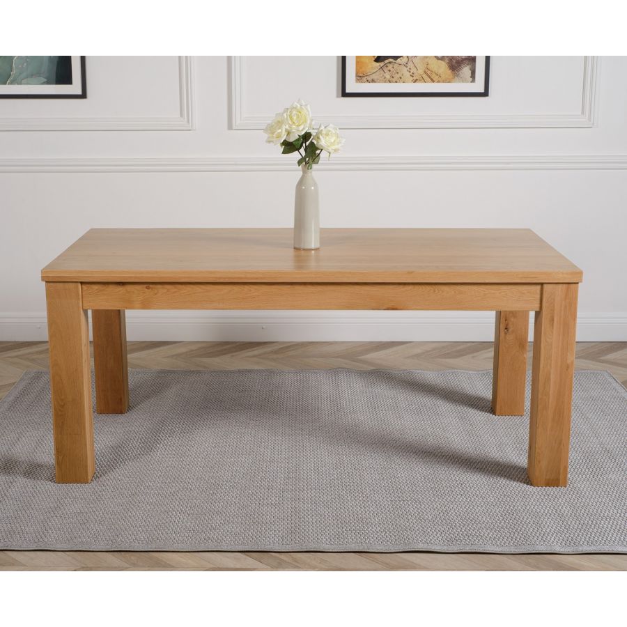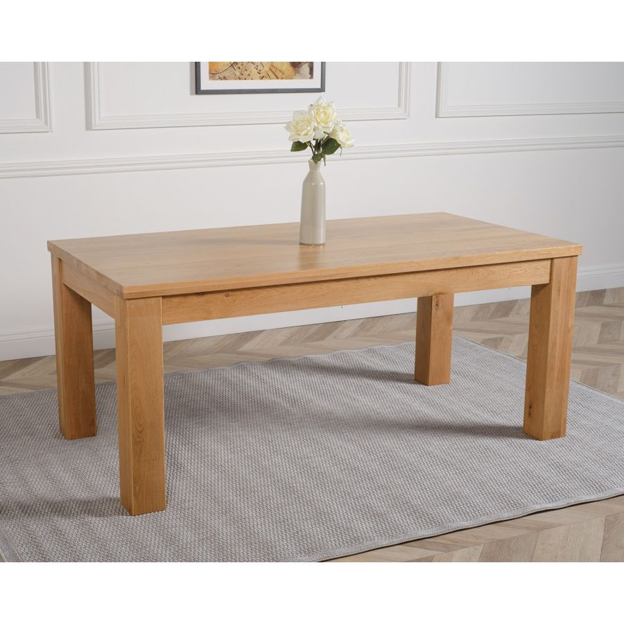 Featuring a distinct thick cut table top with chunky robust square set legs the Dakota large oak dining table has a solid look and feel. Standing at a height of 77 cm with a 182 x 92 cm table top made from thick cuts of full length solid oak timber, the Dakota is easy to clean with a damp cloth making this low maintenance solid oak dining table and chairs set 6 ideal for everyday use.