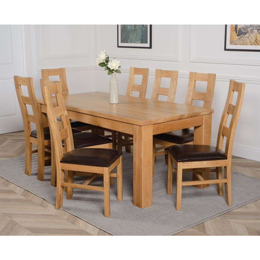 DAKOTA 182CM SOLID OAK DINING TABLE & 8 YALE OAK CHAIRS