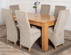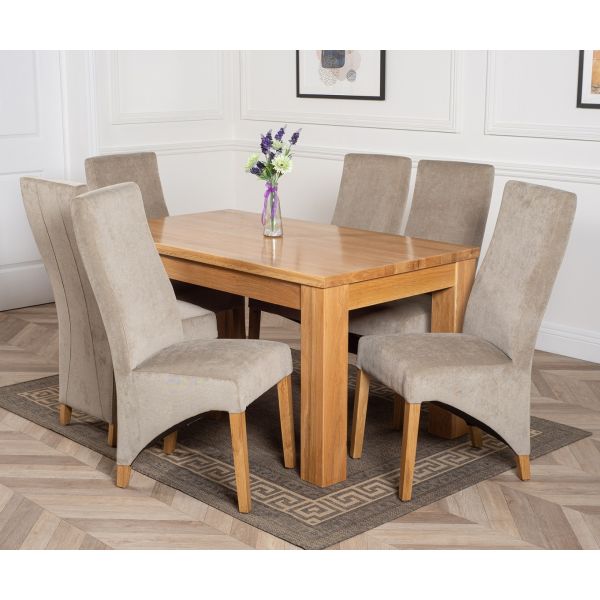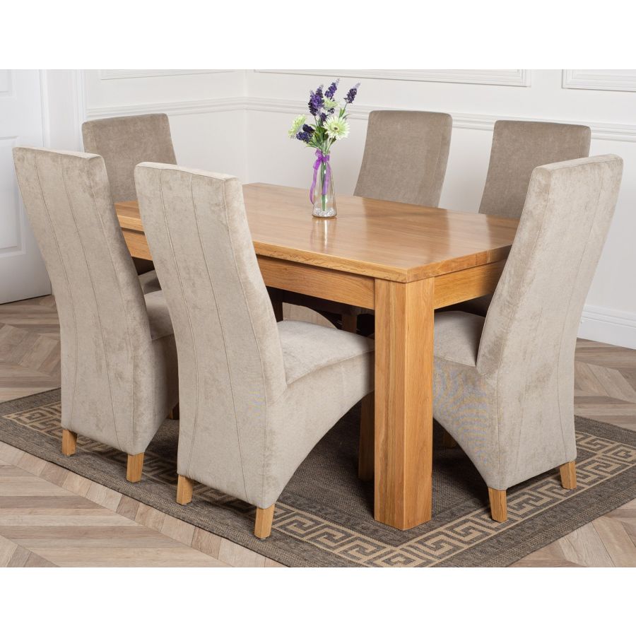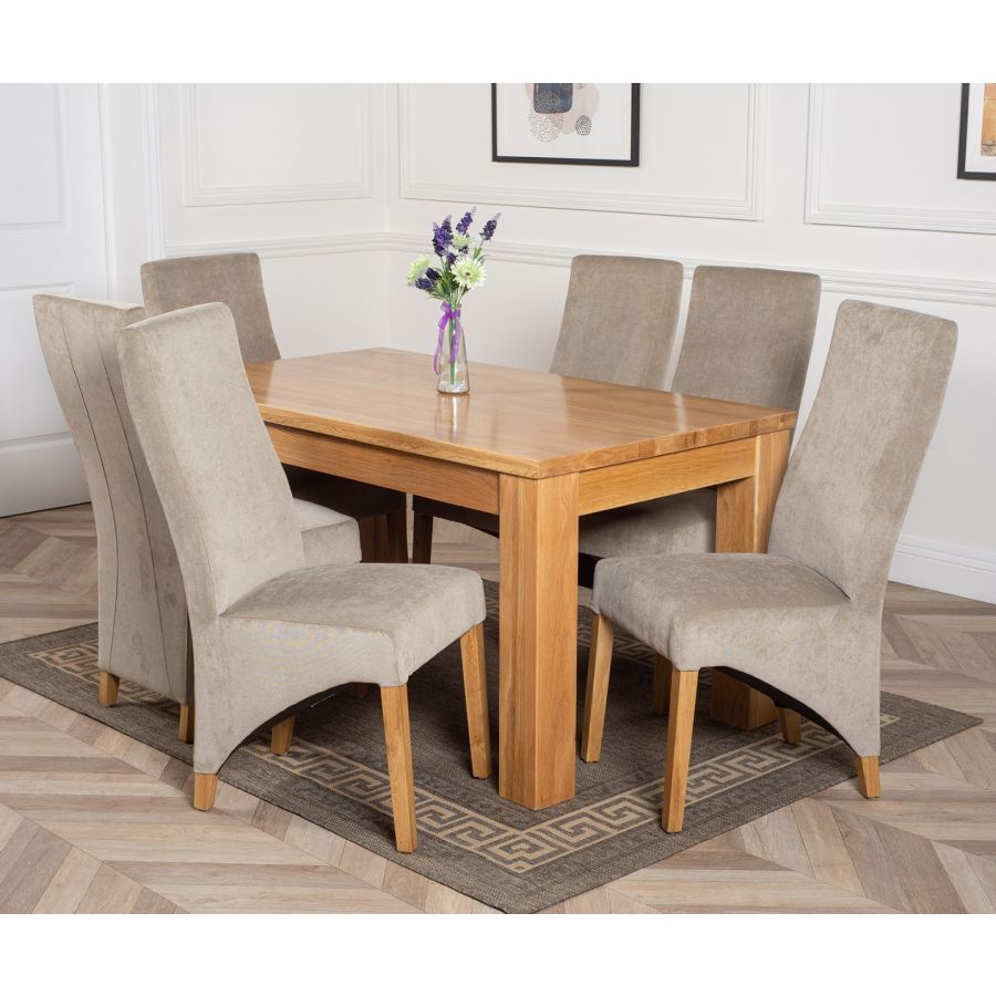 DAKOTA 152CM SOLID OAK DINING TABLE & 6 LOLA FABRIC CHAIRS