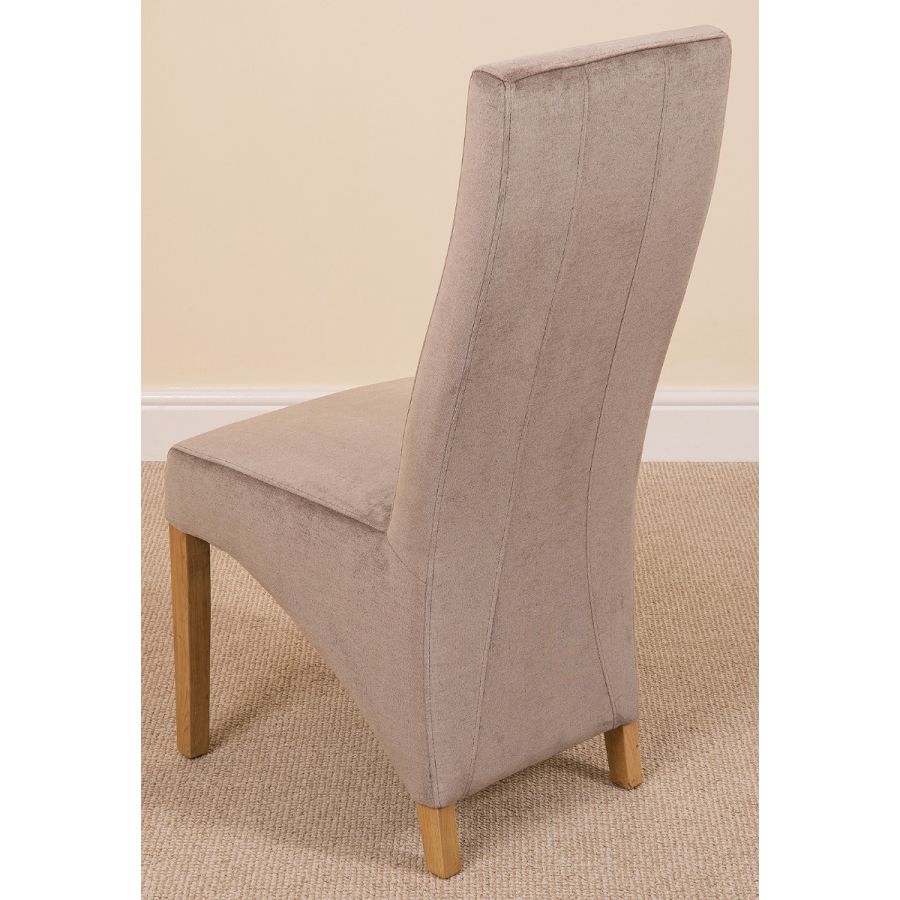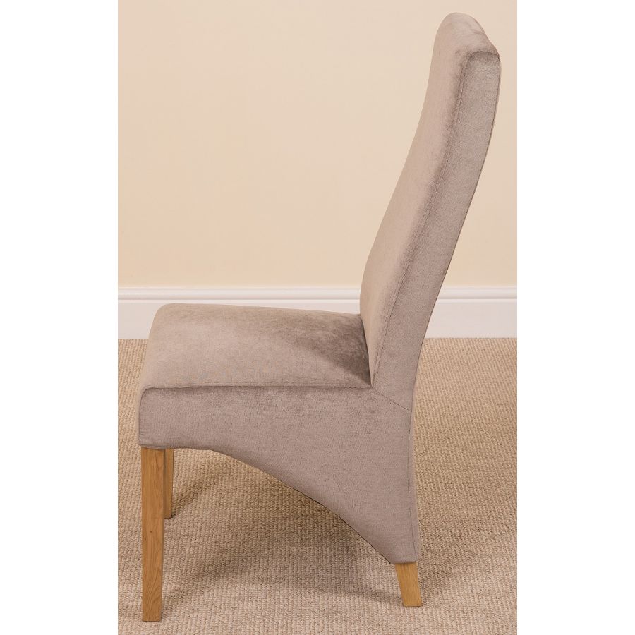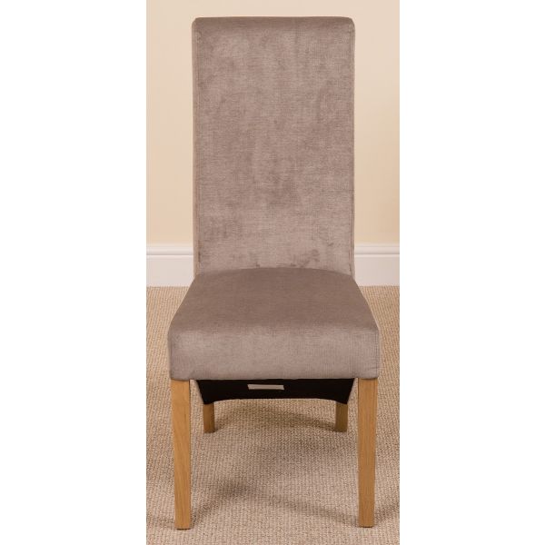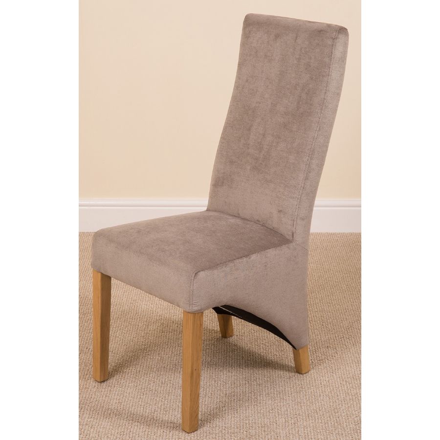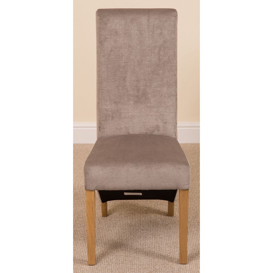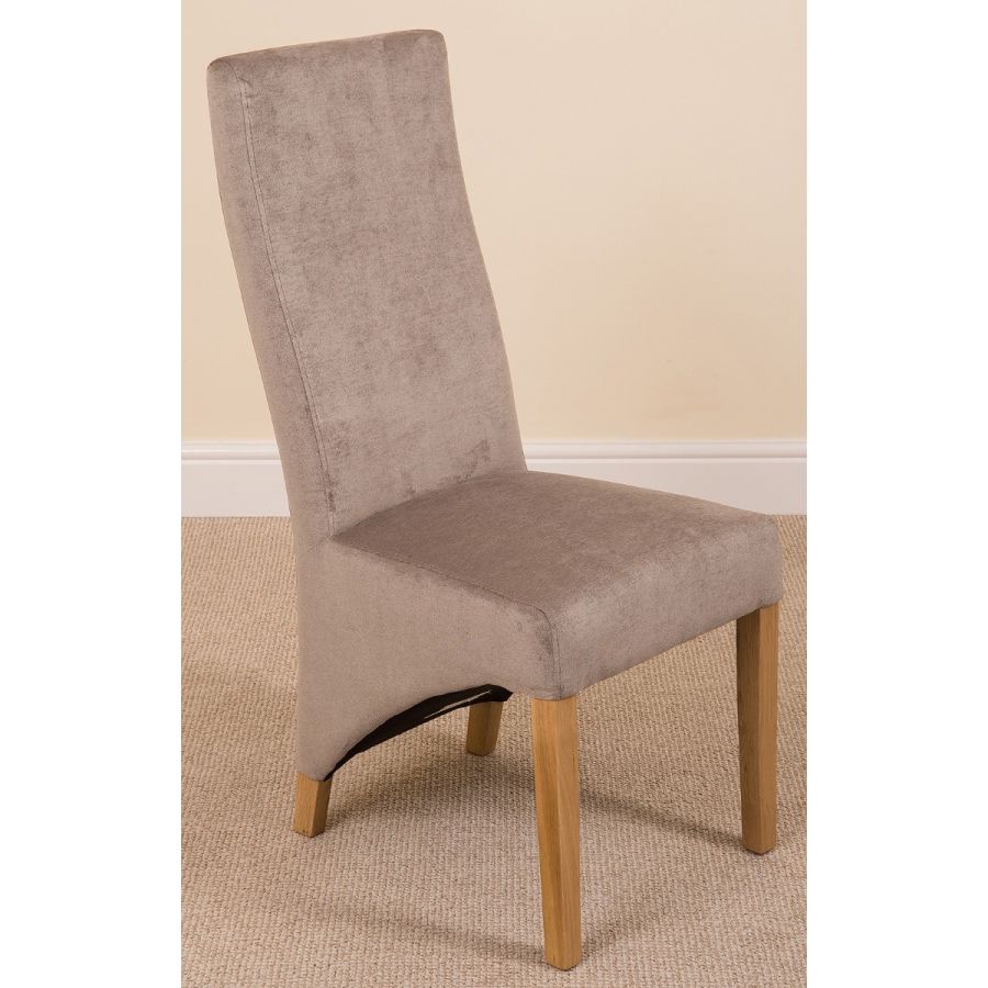 This dinner table and chairs set comes with 6 Lola fabric dining chairs upholstered in grey fabric with solid oak legs, hardwood frame and a sprung seat for exceptional comfort and durability.
