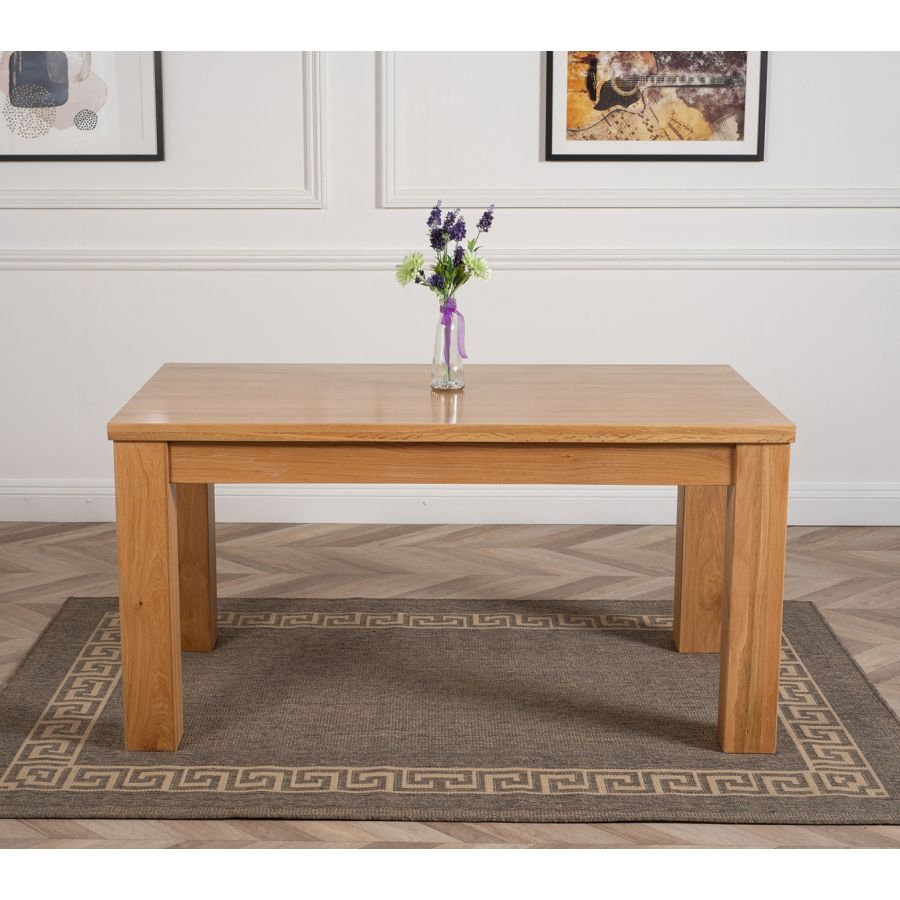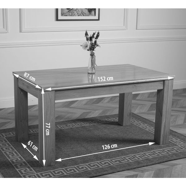 Featuring a distinct thick cut table top with chunky robust square set legs the Dakota medium oak dining table has a solid look and feel. Standing at a height of 77 cm with a 152 x 87 cm table top made from thick cuts of full length solid oak timber, the Dakota is easy to clean with a damp cloth making this low maintenance solid oak dining table and chairs set 6 ideal for everyday use.