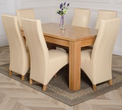 DAKOTA 152CM SOLID OAK DINING TABLE & 6 LOLA LEATHER CHAIRS