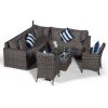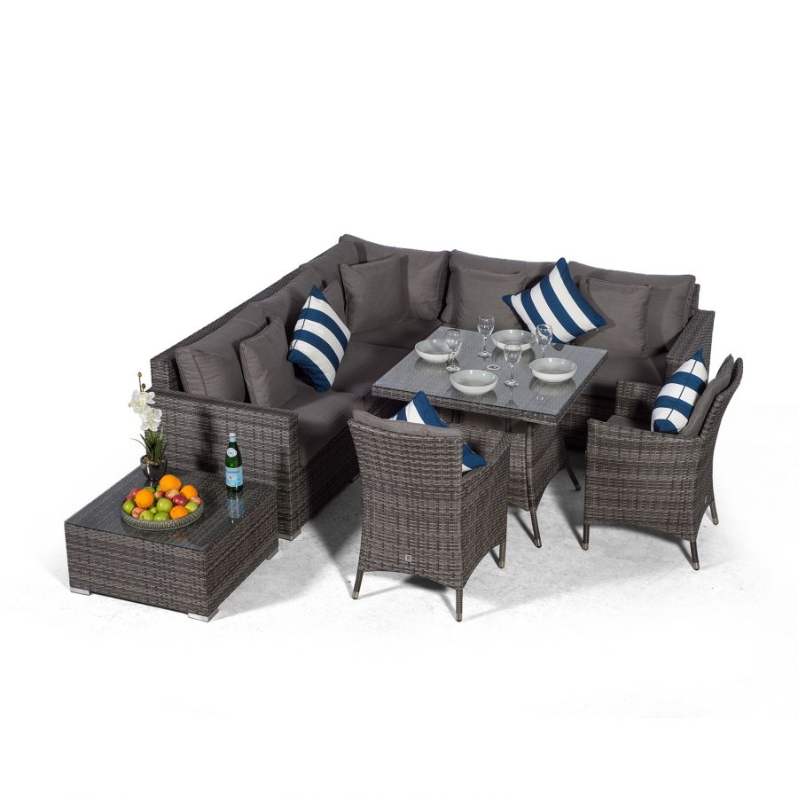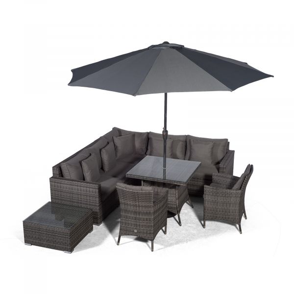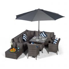One of the versatile features of this set is that the corner sofa and dining table can be used at the same time independently of each other. The dining table can function separately as a dining set using the chairs and parasol included, whilst the sofa set can function independently using the coffee table, providing the ideal setting for casual drinks and snacks.