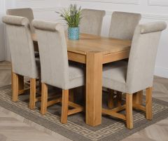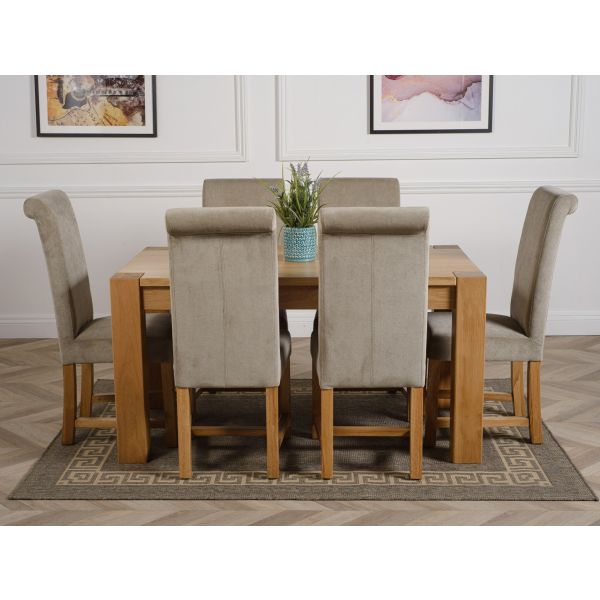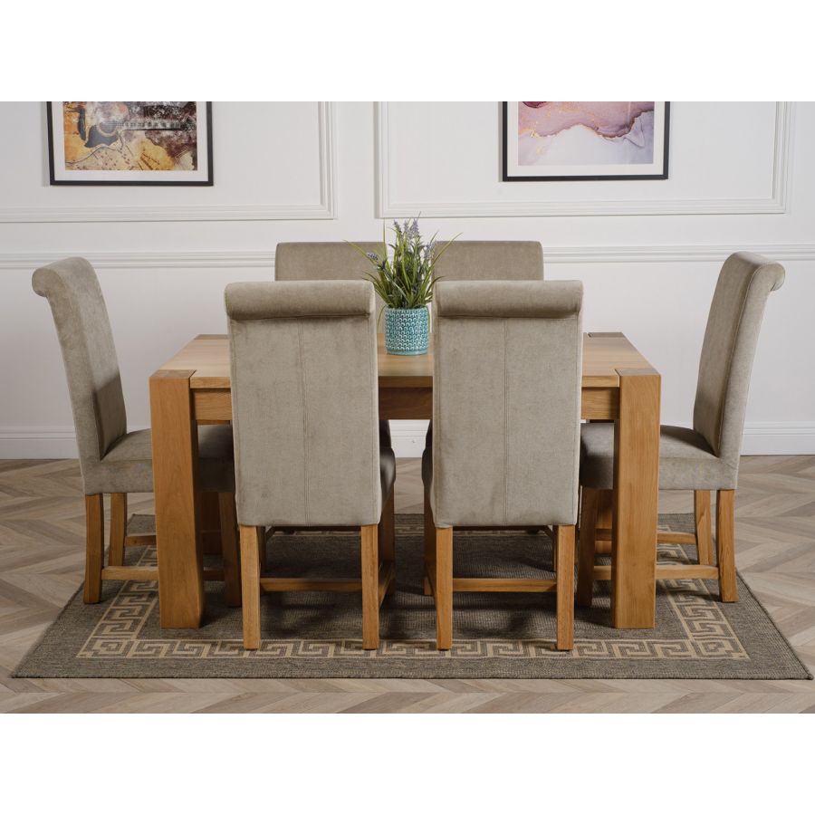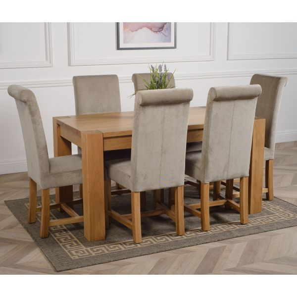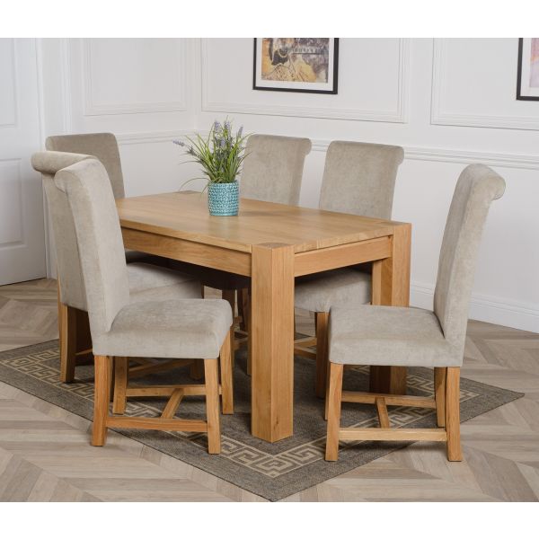 KUBA 150CM SOLID OAK DINING TABLE & 6 WASHINGTON FABRIC CHAIRS