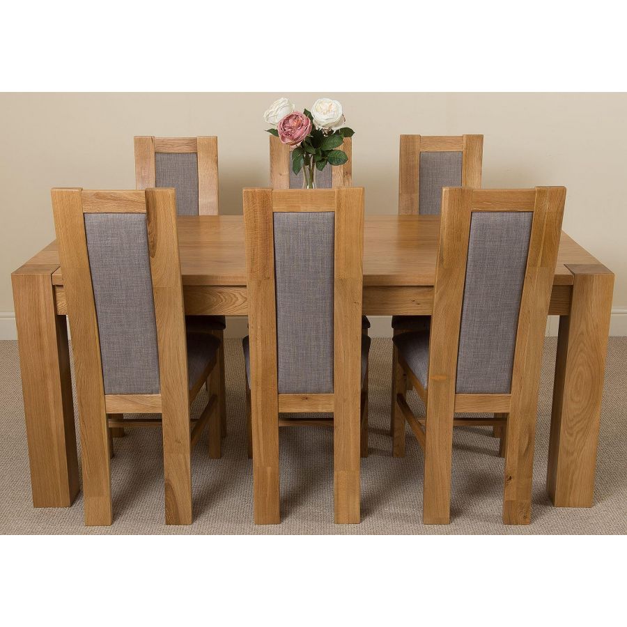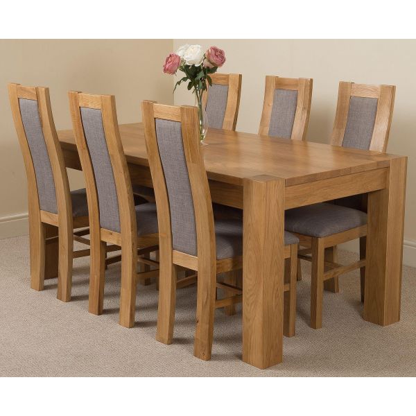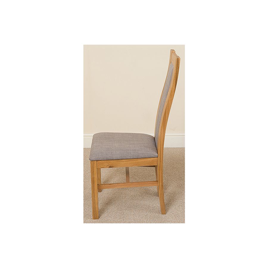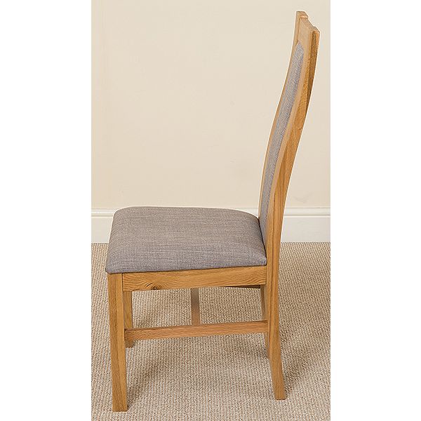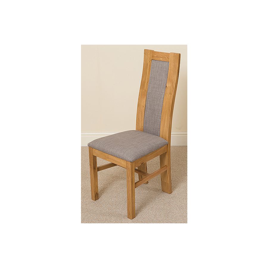 The Kuba solid oak dining set comes with 6 beautifully designed Stanford oak & fabric dining chairs. Delivered fully assembled, the Stanford dining chair features a graceful wave back design with cushioned panel for the ultimate comfort. The seat and back are upholstered in a light grey linen fabric with medium density foam padding. With braced legs and a 100% solid oak wood frame, the Stanford chairs will provide a lifetime of dining pleasure, whether in everyday use or as a formal dining set.