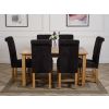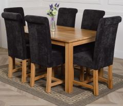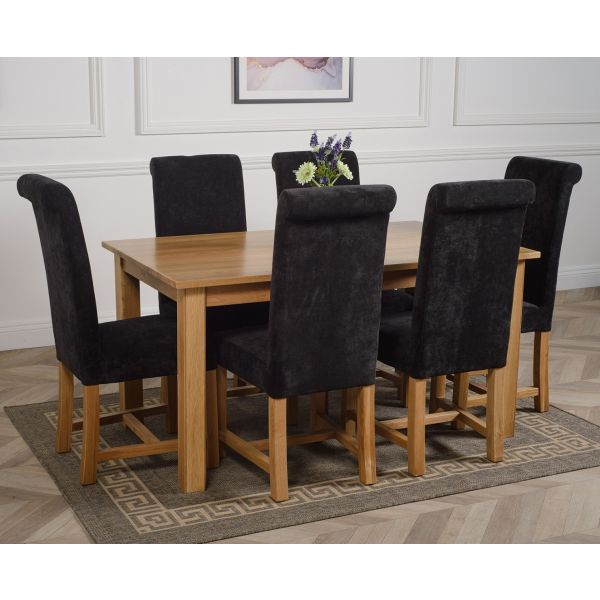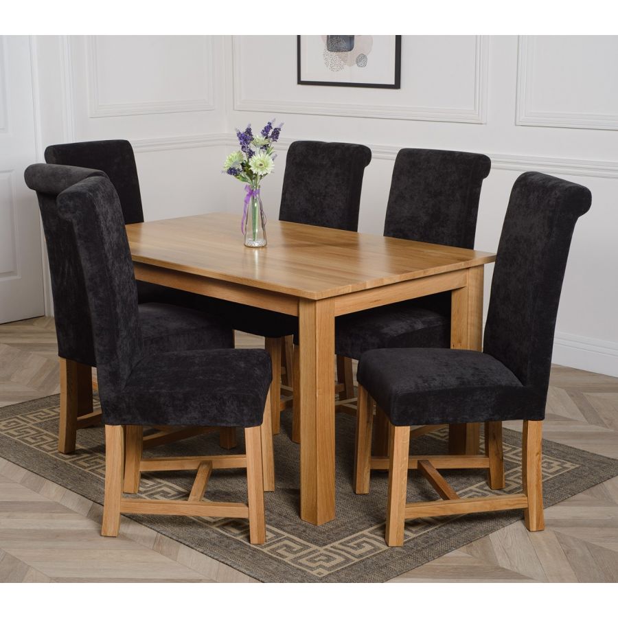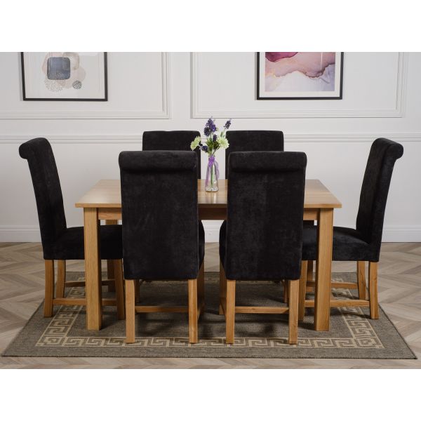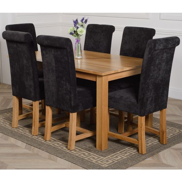 This medium table and chairs comes with 6 Washington dining chairs upholstered in black fabric with solid oak legs, hardwood frame and a sprung seat for exceptional comfort and durability.