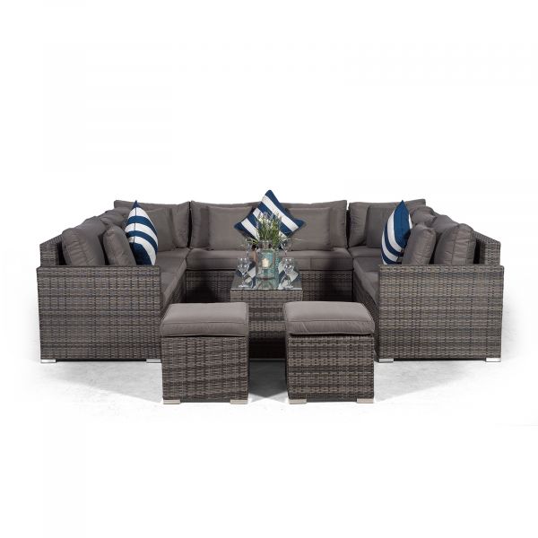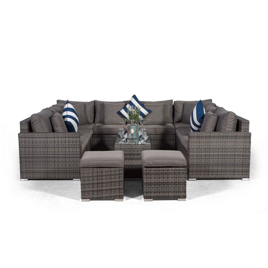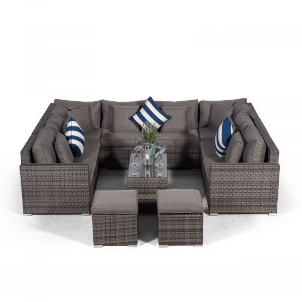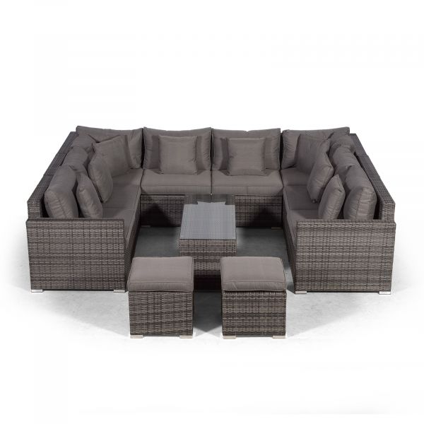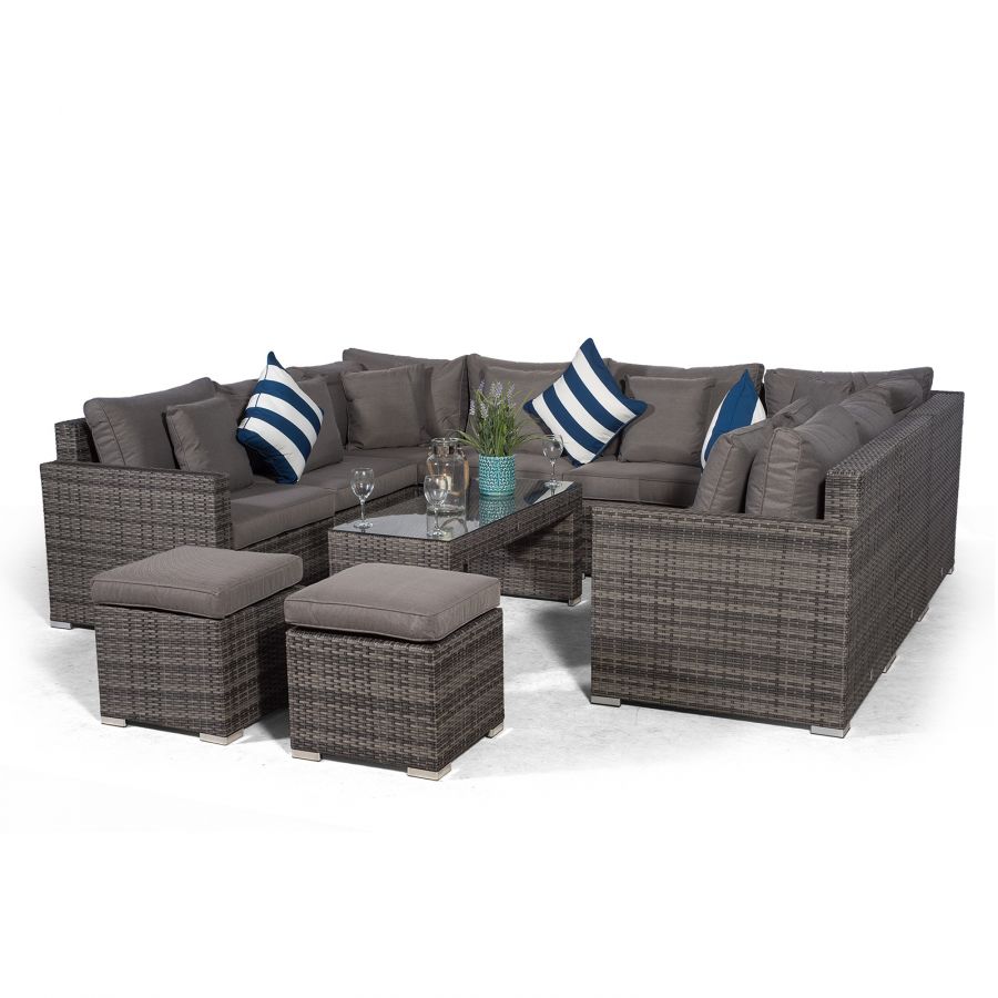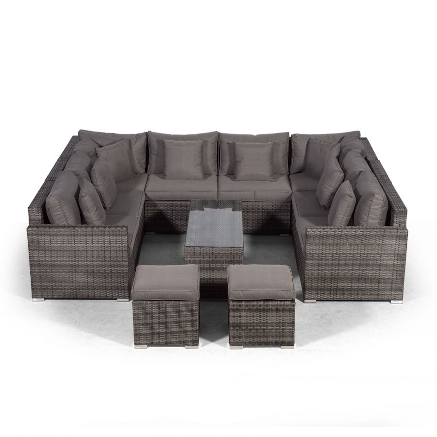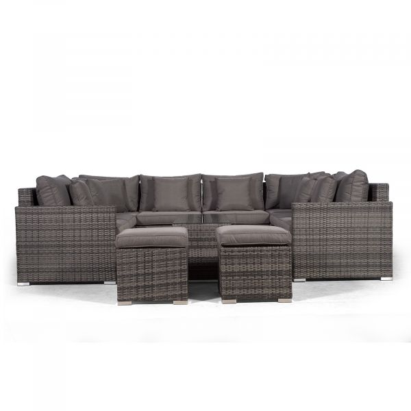 Havana U Shape Modular 8 Seat Rattan Sofa Set With Large Coffee Table & 2 Stools - Grey