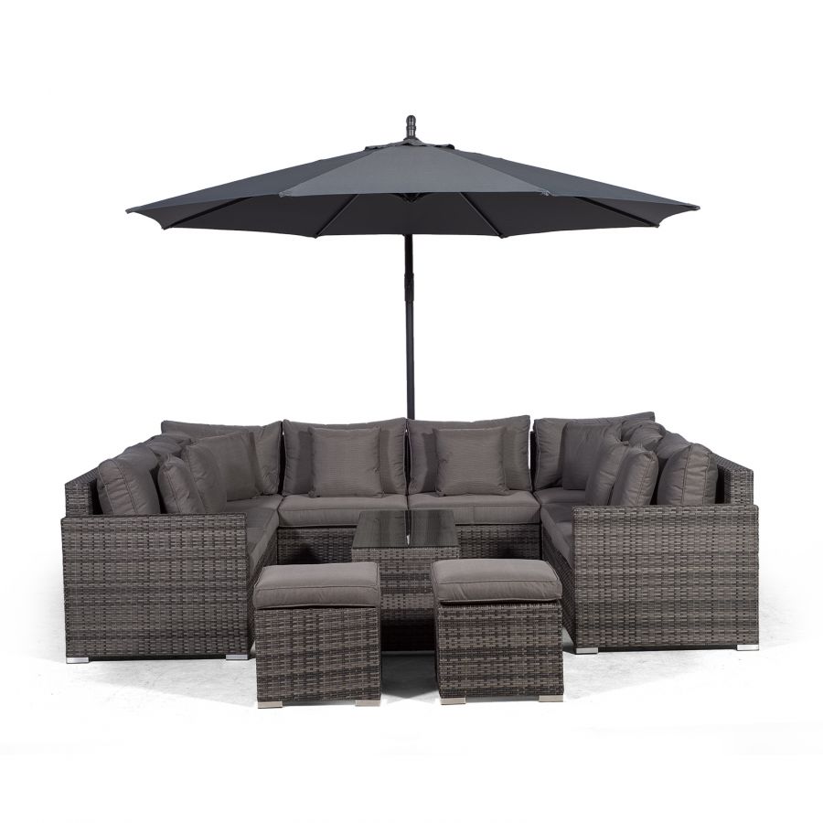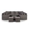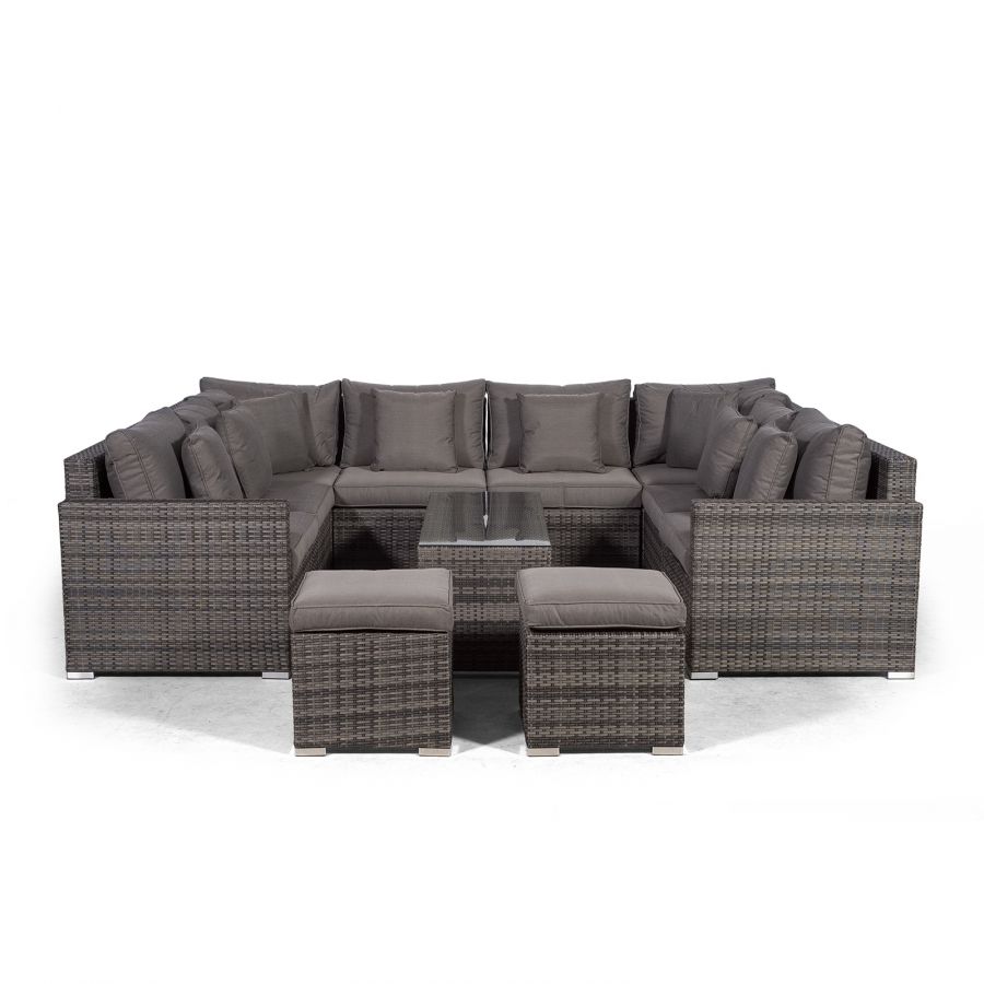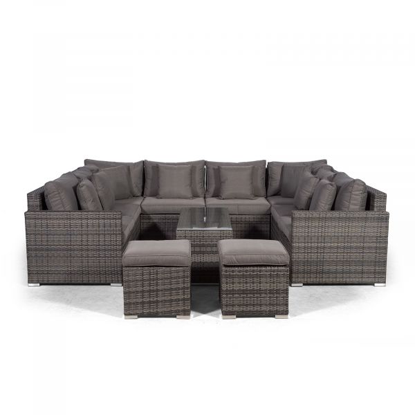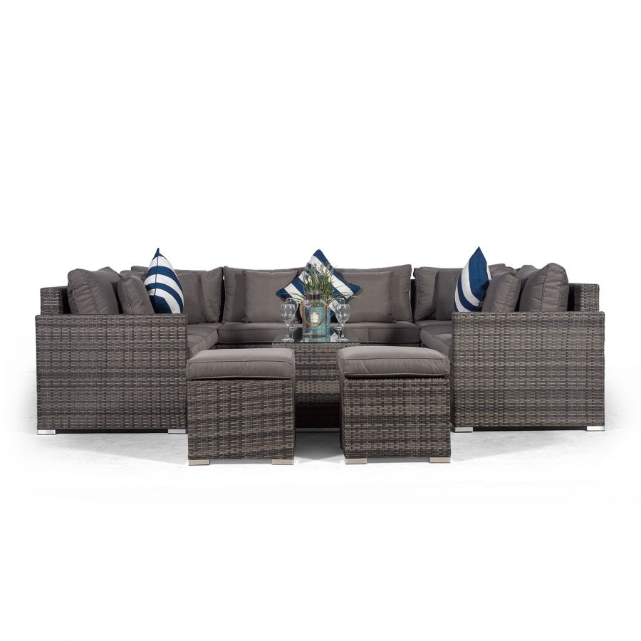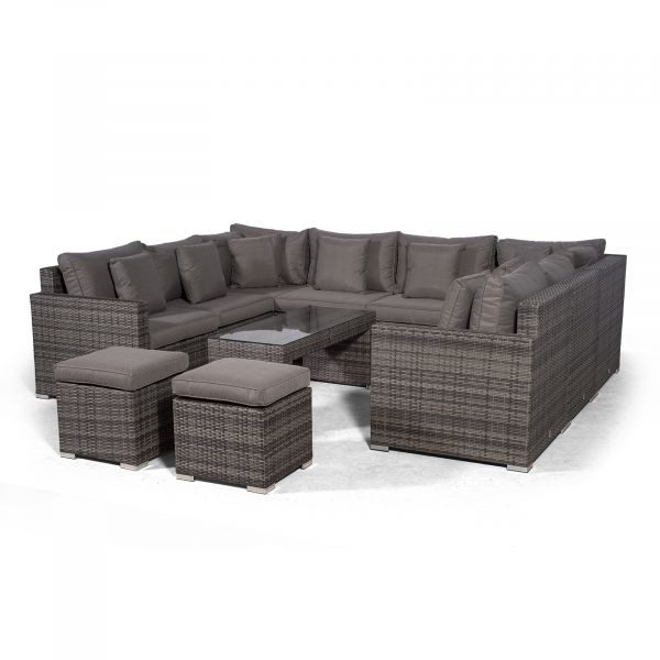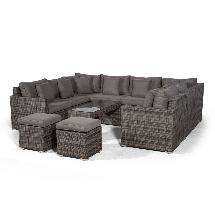 Havana U Shape Modular 8 Seat Rattan Sofa Set With Large Coffee Table & 2 Stools - Grey