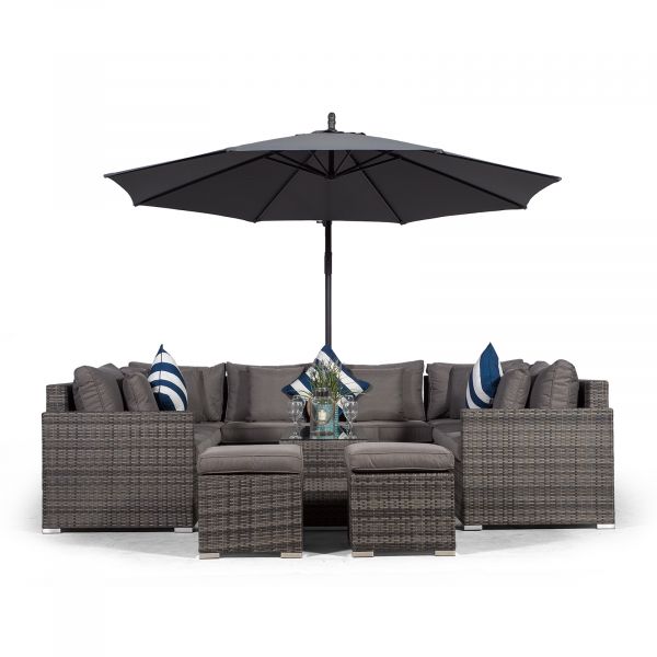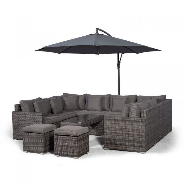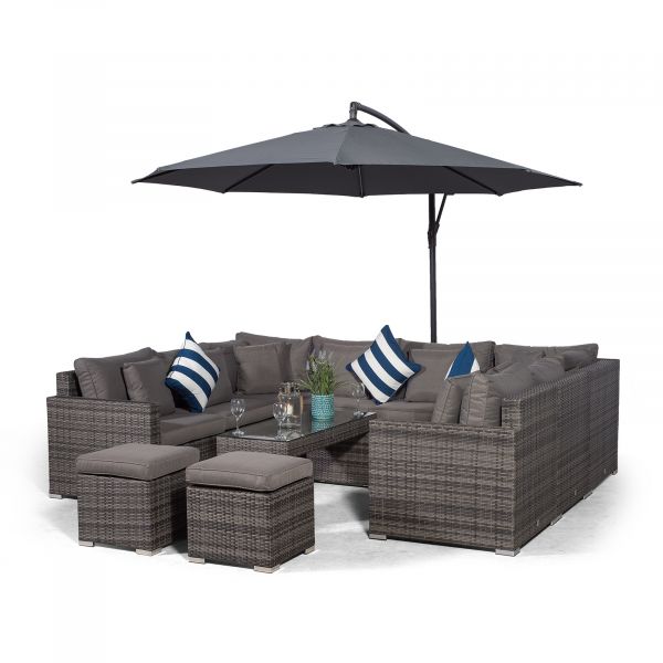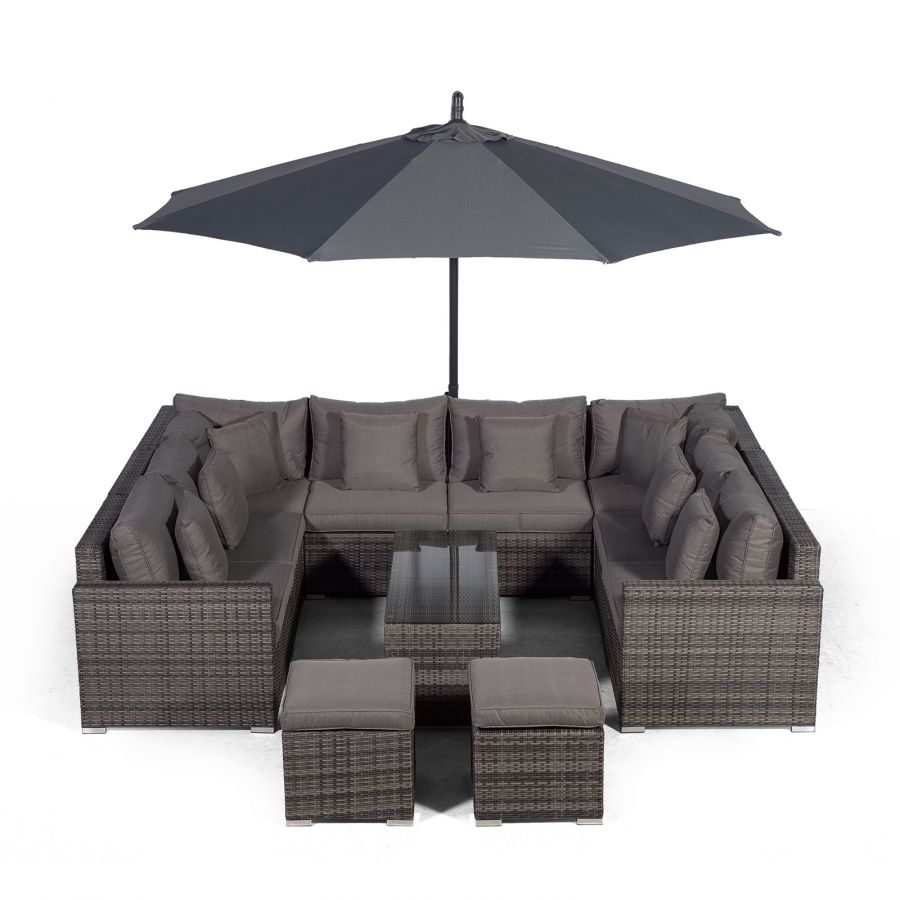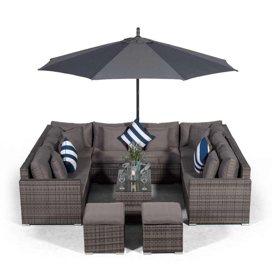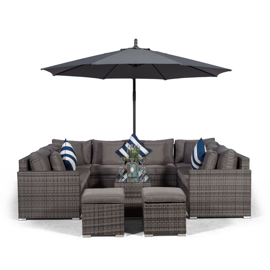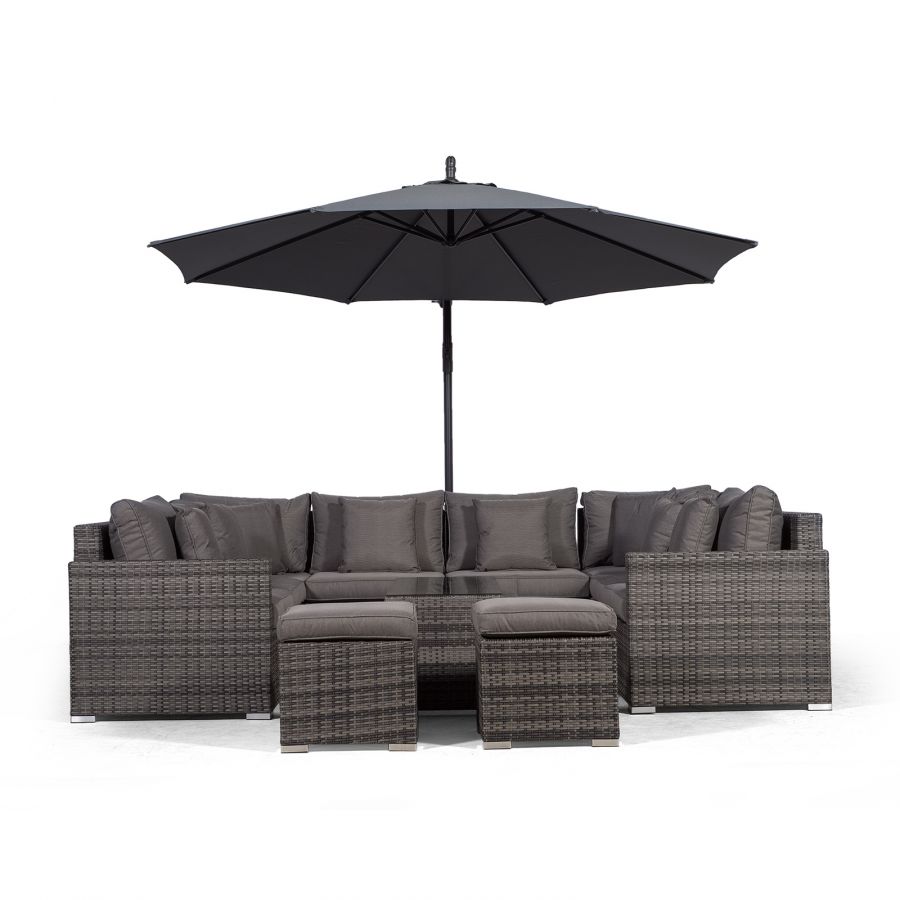 Havana U Shape Modular 8 Seat Rattan Sofa Set With Large Coffee Table & 2 Stools - Grey