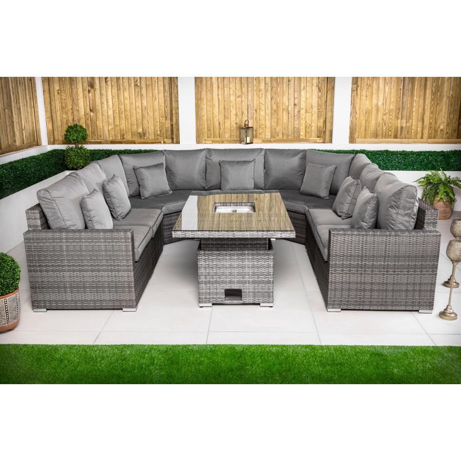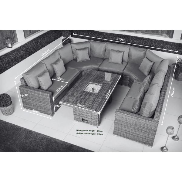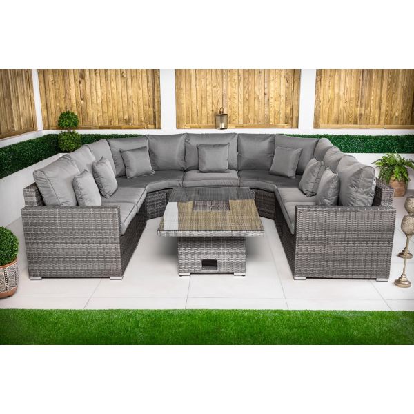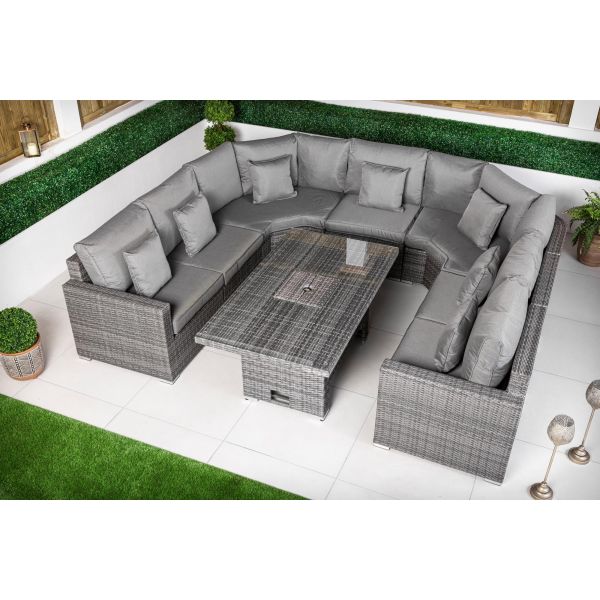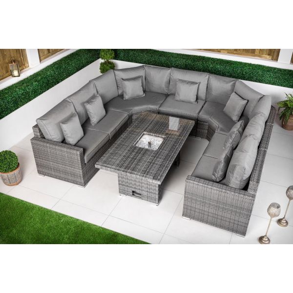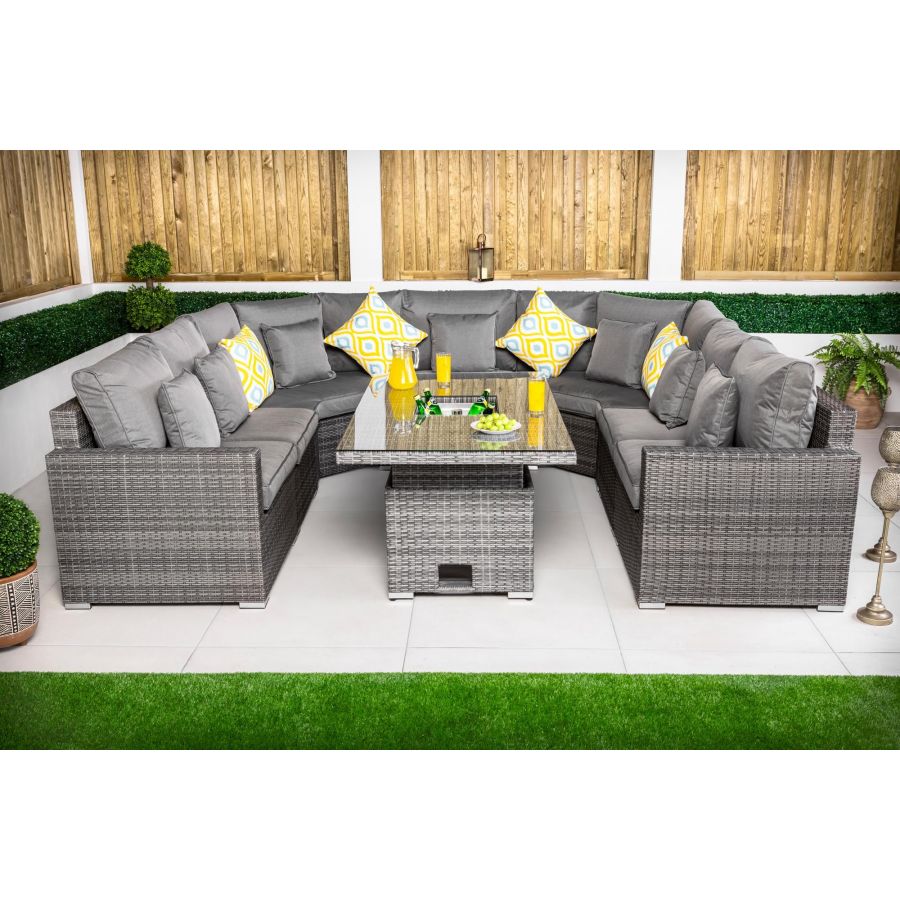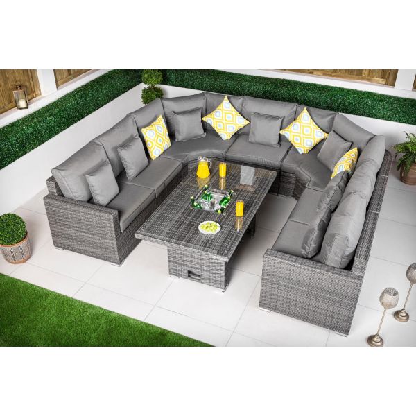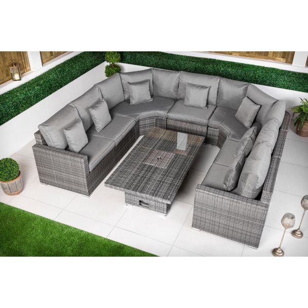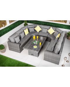 Santorini 7 Seat Rattan Sofa Set With Height Adjustable Ice Bucket Coffee Table - Grey