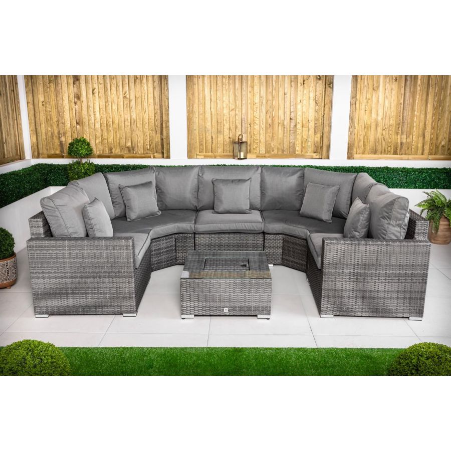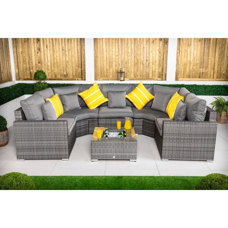 Designed to create a welcoming and sociable outdoor seating area, the Santorini luxury U-shaped sofa set is a stylish and practical centrepiece for modern gardens and patios. Configured with five modular seating sections and a coordinating square ice bucket coffee table, this set delivers an ideal balance of comfort, functionality and contemporary outdoor design.