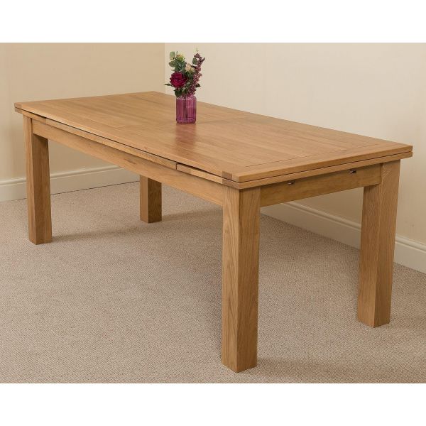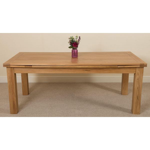 Quality craftsmanship, our oak dining table sets are proudly handmade from sustainably sourced oak timber using time-honored techniques. Inlaid grooves on the table top allow for natural expansion of the wood over time and prevent bowing, a sure sign of quality design. Each piece goes through a process of fine sanding and polishing for a smooth finish which is sealed in a clear lacquer protecting and enhancing the appearance of the wood grain on this oak extendable dining table and chairs set.