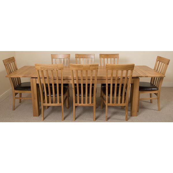 The Richmond Large Dining Set with 8 Harvard Chairs is perfect for family gatherings. Made from 100% solid oak, this oak table and chairs delivers high quality workmanship in a stylish and functional oak dining set. The Richmond oak wood table and chairs will add a touch of warmth to your home with its natural oak hue. Each piece of this oak dining room set has been thoughtfully designed and crafted to provide you with years of continued satisfaction.