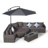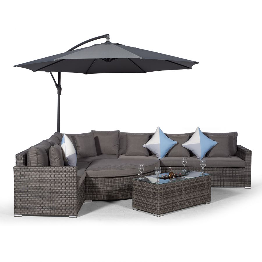 Your garden seating arrangement just wouldn't be complete without a large parasol to provide cooling shade on those extremely hot days. The Santorini 'L' shaped outdoor modular sofa set comes complete with a free-standing 3m parasol with wind-up 'crank' mechanism, fitting perfectly behind the sofa to create a cooling canopy. When not in use simply wind the crank handle to easily fold the parasol away.