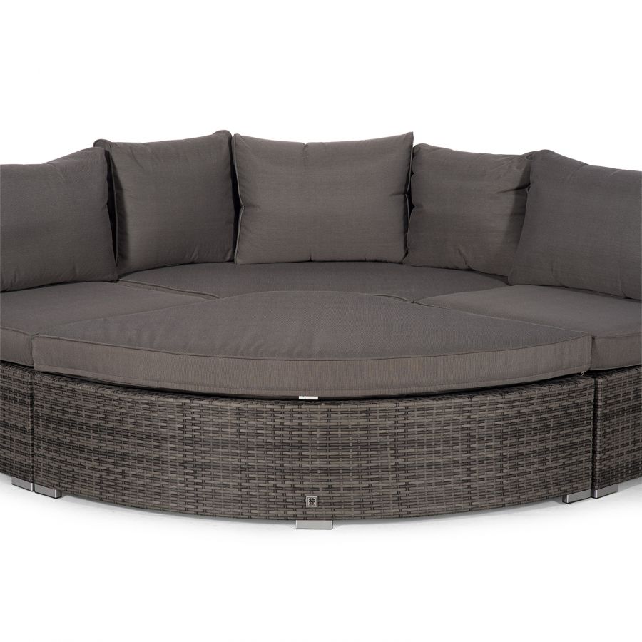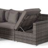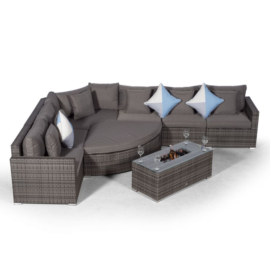 Consisting of a modular 6 seat angled corner sofa with a large drinks cooler coffee table, the Santorini sofa set can be configured in a variety of combinations to suit your outdoor living space. Once you have your ideal seating arrangement, simply clip each section together to keep everything in its place. The end seats feature adjustable bases which effortlessly convert the sofa into comfortable sun loungers whilst the angled ottoman connects to the corner seat to form a daybed.