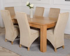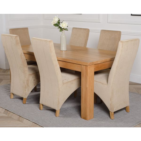 DAKOTA 182CM SOLID OAK DINING TABLE & 6 LOLA FABRIC CHAIRS