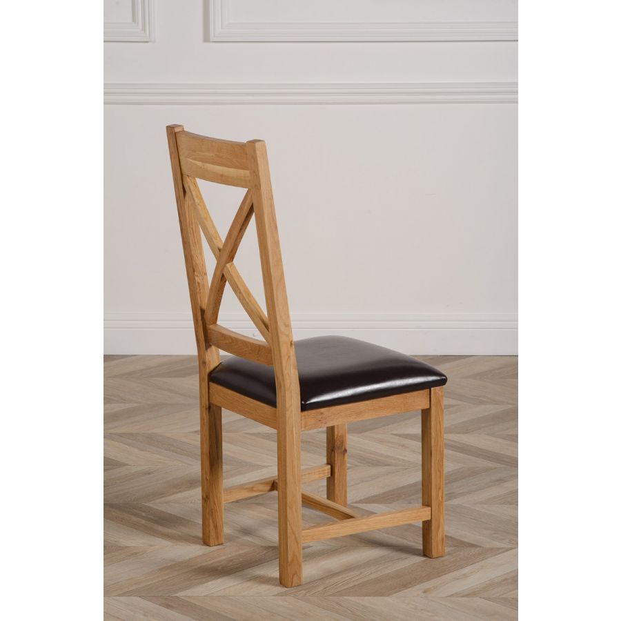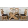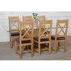 This dinner table and chairs set comes complete with 6 fully assembled Berkeley oak dining chairs made from solid oak with a cross back design, comfortable cushioned brown leather seat and braced legs for extra support.