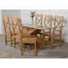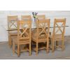 This dinner table and chairs set comes complete with 6 fully assembled Berkeley oak dining chairs made from solid oak with a cross back design, durable solid oak seats and braced legs for extra support.