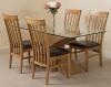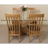 This dinner table and chairs set comes complete with 4 fully assembled Harvard slat back oak dining chairs made from solid oak with padded seats upholstered in brown bonded leather.