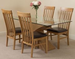 VALENCIA OAK 160CM GLASS DINING TABLE & 4 HARVARD OAK CHAIRS