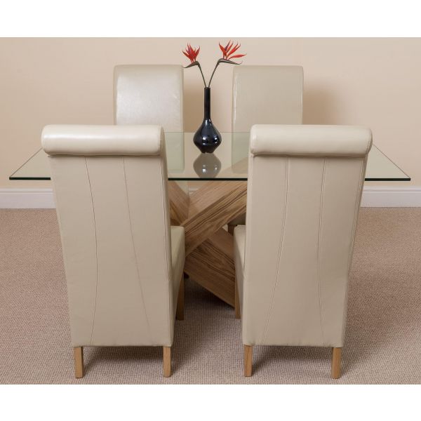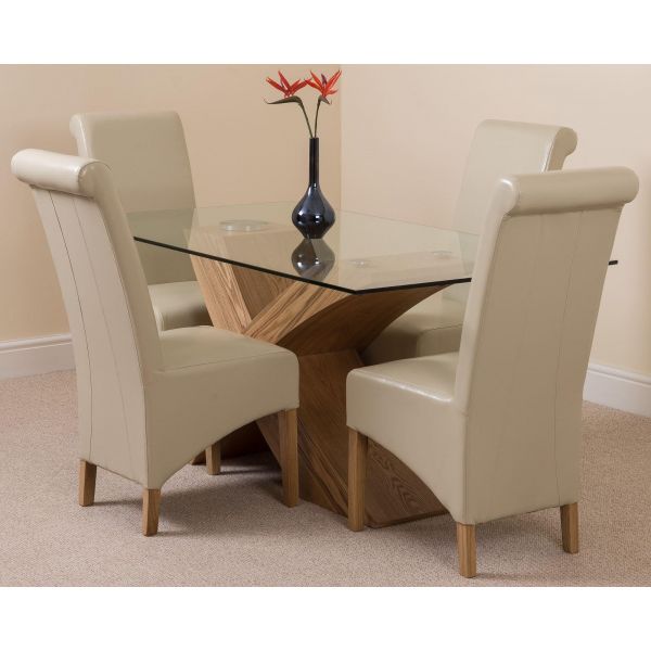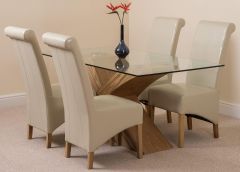 VALENCIA OAK 160CM GLASS DINING TABLE & 4 MONTANA LEATHER CHAIRS